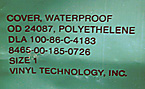 現用の官給ピストルカバー。NAM 戦の物と比べ色が濃くなり(OD 24087)スペックに材質を表示されるようになりました。(ポリエチレン製)OLA 86年。