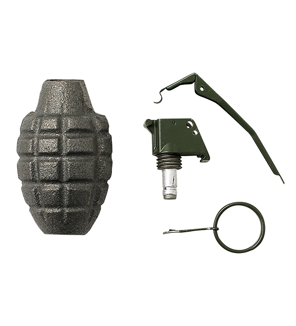 本品は数十年前に米軍基地より放出された使用済ハンドグレネードではなく、NAM戦時新兵のトレーニング用として製造支給されたダミーハンドグレネードを継続製造された物です。