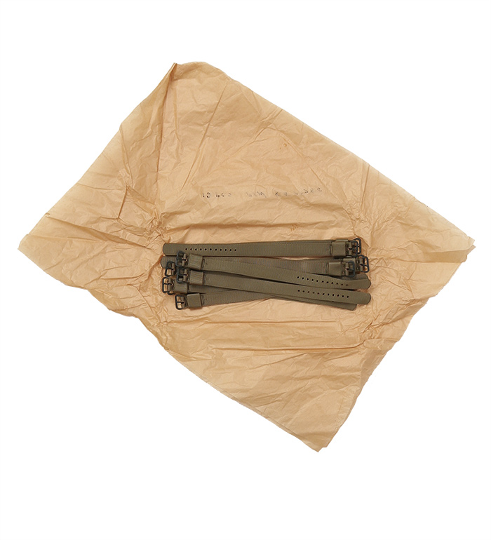 ご案内は一度も使用されずに放出に至った実物・未使用品であり、実物軍物の中にあってはこれ以上のコンディションの物は望むべくもありませんが、現地軍倉庫で長年保管されていた関係上、使用に差し支え無い範囲においての経年変色、僅かな保管汚れ、等がありますこと、予めのご了承お願いいたします。