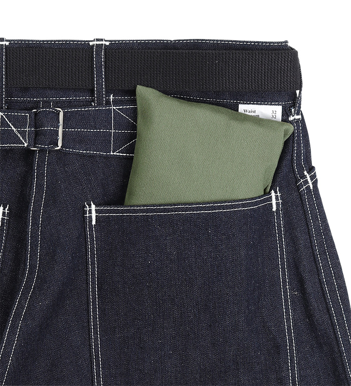 収納されたバッグはジーンズのヒップポケットに収まる大きさです。