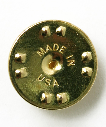 米軍において金属製インシグニア(徽章)類の固定方法で、クラッチバック仕様の物に使用されている固定用クラッチ・ディスク5個セット。米軍への代表的な徽章及び関連金属部品類の製造・納入メーカー、VANGUARD社製、新品。