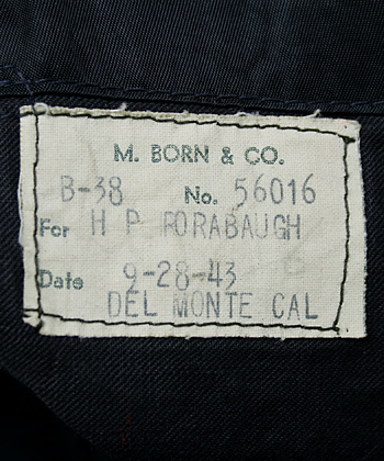 大戦時、米海軍士官により、個人調達されたテーラー・メイドの制服上衣(ドレスジャケット)。袖口にゴールドライン&スター入りの大尉着用品。実物極上品。