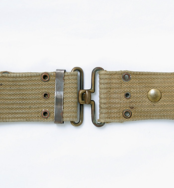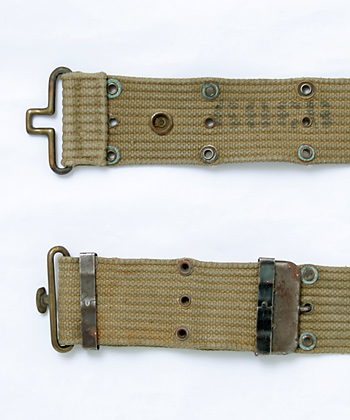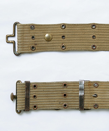 大戦時におけるコットンキャンバス製素材のM-1936型ピストルベルト。大戦前半期のカーキカラータイプ。実物USED品。