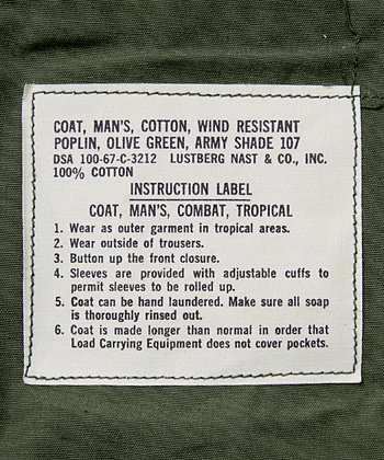 ■制式名称:COAT, MAN'S, COTTON, WIND RESISTANT POPLIN, OLIVE GREEN, ARMY SHADE 107