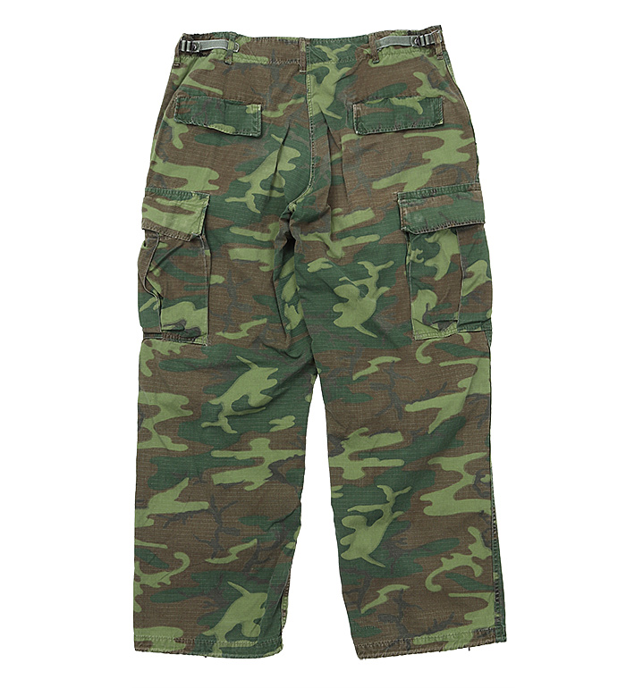 NAM戦時『米陸軍技術研究&開発研究所/通称:ERDL』によって開発され、1967年末より支給が開始された米軍新型迷彩野戦パンツ。紹介はグリーンリーフ又は初期リーフと呼ばれるグリーンの色調が強いタイプ。実物極上(美品)、放出品! !