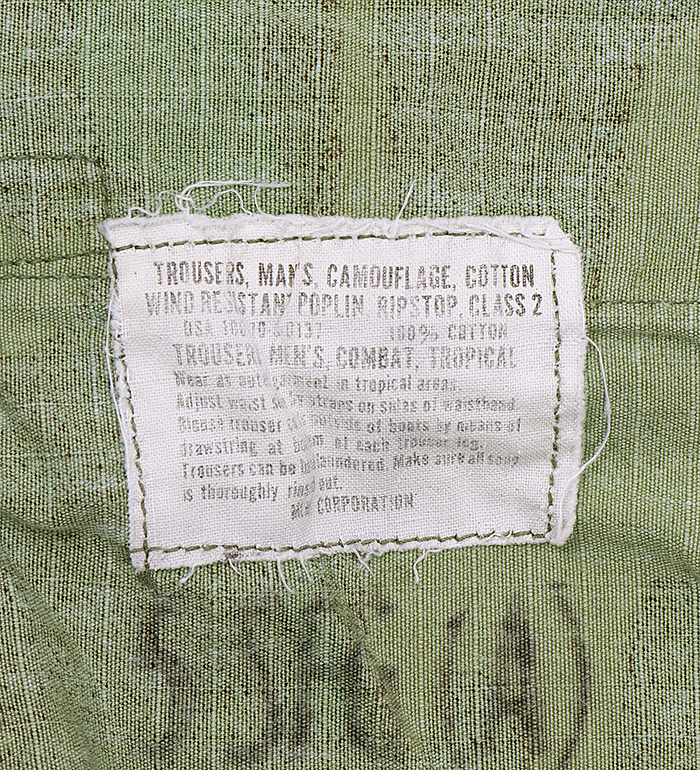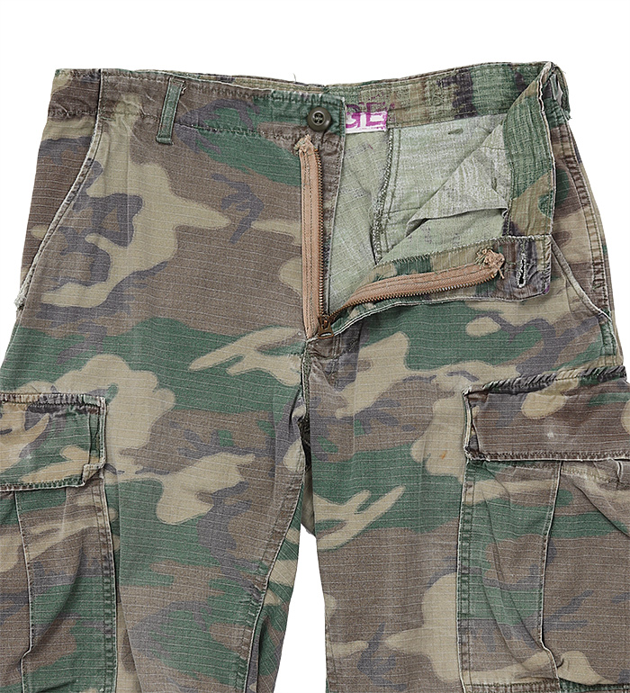 NAM戦時『米陸軍技術研究&開発研究所/通称:ERDL』によって開発され、1967年末より支給が開始された米軍新型迷彩野戦パンツ。採用時よりグリーンの色調が強いタイプとブラウンの色調が強いタイプの2種存在し、紹介はブラウンリーフと呼ばれるブラウンの色調が強いタイプ。実物良の上、放出品! !