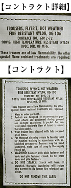 ■制式名称:TROUSERS, FLYER'S, HOT WEATHER FIRE RESISTANT NYLON, OG-106