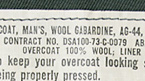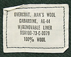 OVERCOAT, MAN'S, WOOL, GABARDINE, AG-44 WITH REMOVABLE LINER
