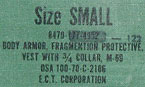 BODY ARMOR, FRAGMENTION PROTECTIVE,VEST WITH 3/4 COLLAR,M-69