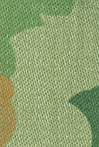 米軍においてNAM戦時に、通称「ミッチェル・パターン」と呼ばれるリーフカモ柄のヘルメットカバー。リバーシブル(表側/グリーン系、裏側/ブラウン系)。初期コットンサテン生地タイプ(右上画像参照)。