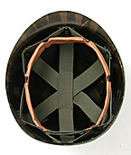 米軍NAM戦時におけるM2ヘルメット用ライナー内側に装着(右上参考例画像参照)される、接頭面に本革が縫い付けられた着脱式ヘルメットバンド。実物USED放出品。