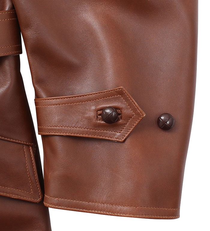 ■ボタン (フロント & 袖口):トラディショナル・レザープ レィテッドボタン (革くるみボタン)