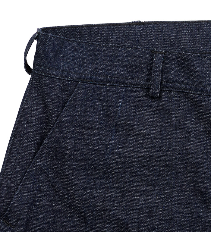 30年代初期開発された10.5オンス・ミリタリーデニムを用い製作された『USN M-44 Denim Trousers』、ポケット袋は本体と同じデニム地が使用されている。