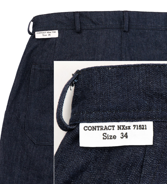 WWII時における『US Navy Denim Trousers』にはフロントがパッチポケットのベルボトムタイプ、サイドポケットのストレートタイプの2種が存在した。今回の復刻制作は後者のストレートタイプ。大戦まではデッキ上、人目に付く場所での着用を禁止された作業用『Dangaree Working Uniform(シャンブレーシャツ & デニムトラウザーズ)』であったが、参戦以降は一般兵士/下士官用の戦闘用として広く使用された。『US Navy M-44 Denim Trousers』復刻版完成! !