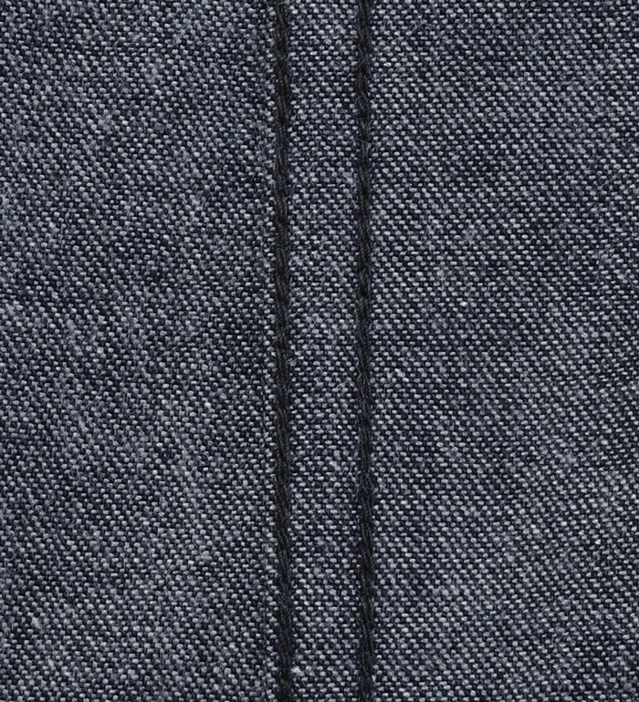 5/16インチ幅、2重環縫い(チェーン・ステッチ)で縫製された身頃。
