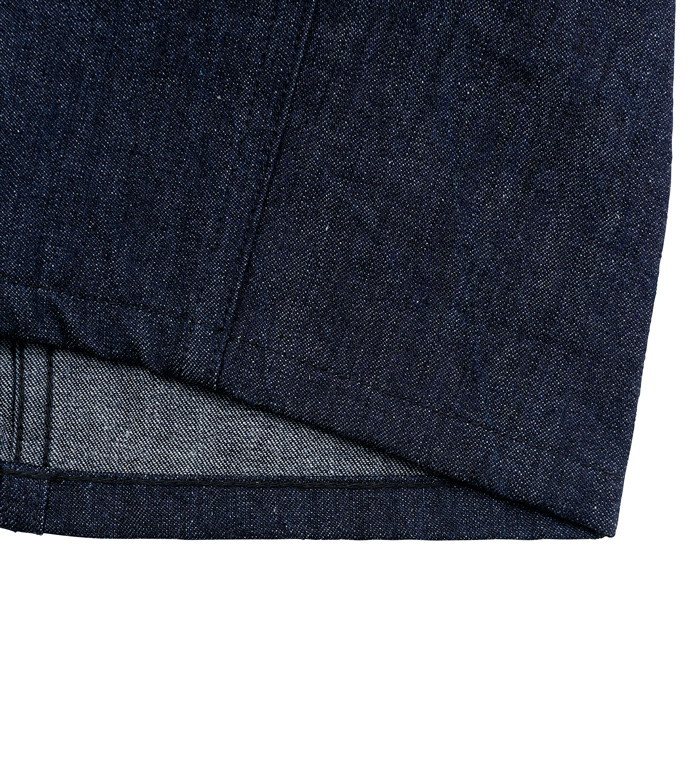 インディゴ染料でロープ染色されたタテ糸が表に顕れる10.5オンスミリタリーデニムは、洗い込み使用を重ねる毎に独特の色調の変化、当たり感が楽しめる。