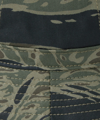 NAM戦時、日本でプリントされたタイガー生地原反の一部がヴェトナムに送られ、幾つかの品々が現地生産(ローカルメード)された。ここに紹介する『NAVY SEALs ビーチハット』も、それら現地生産(ローカルメード)された物の一つであり、6個のパーツを縫い合わせた頭頂部を持つこのハットは『NAVY SEALs』隊員達に愛用された事で知られる。