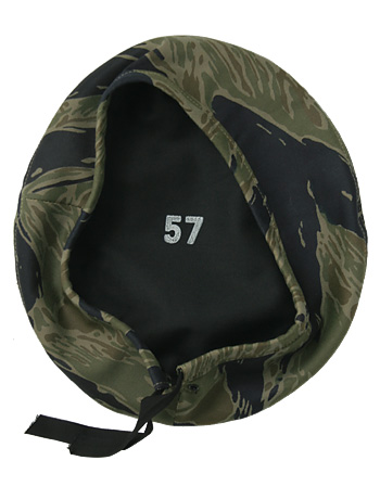 NAM戦時、日本でプリントされたタイガー生地原反の一部がヴェトナムに送られ、幾つかの品々が現地生産(ローカルメード)された。ここに紹介する『ベレー』も、それら現地生産(ローカルメード)された物の一つであり、多くのスペシャルフォース、SEALs隊員達に愛用された。