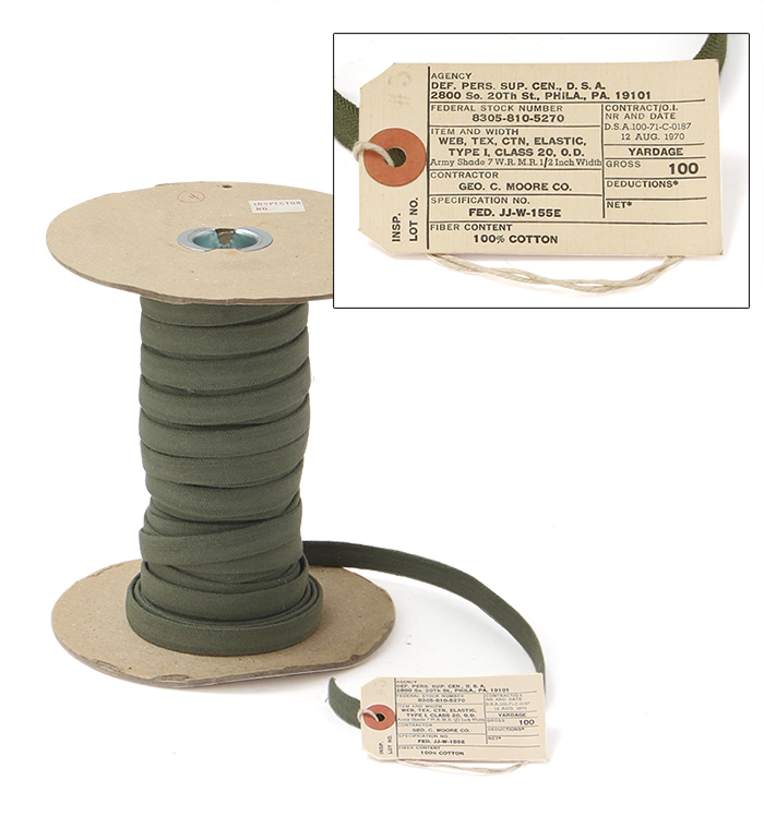 ■使用素材:1971年製、米軍実物エラスティック(伸縮)バンド >画像参照