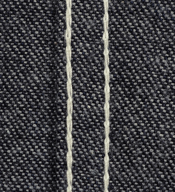 インディゴ染料でロープ染色されたタテ糸が表に顕れ、トップダイと呼ばれる独特の風合いを持つリング紡糸(ヨコ糸)が裏面に顕れる10.5オンス・ミリタリーデニム。