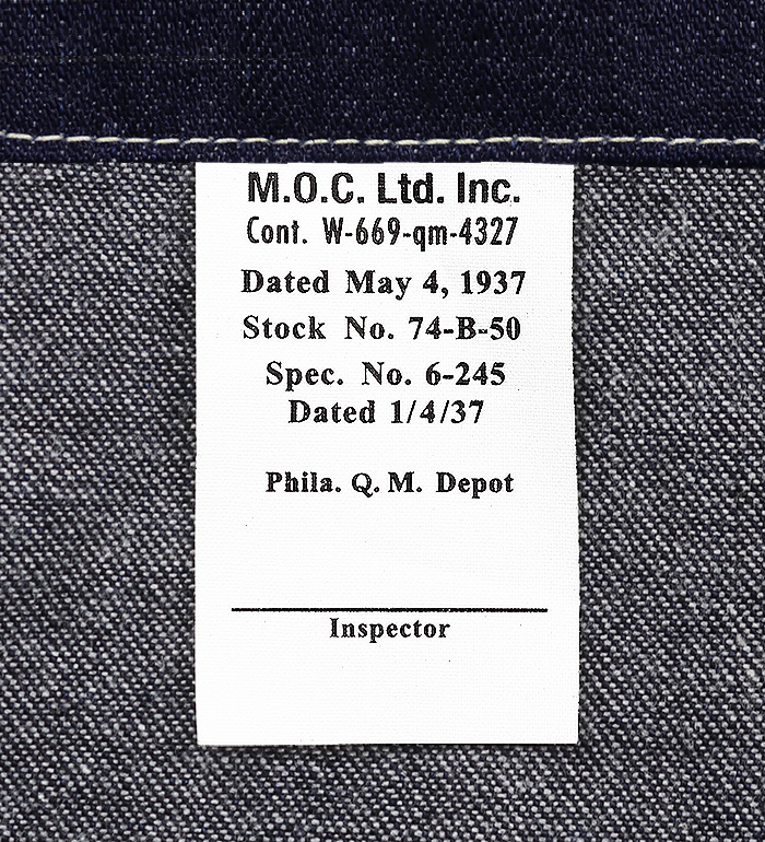 採用年月日1937年1月4日及び契約年月日1937年5月4日が確認できる契約ラベル。