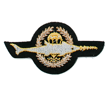ドイツ連邦海軍におけるKampfschwimmer(米軍のSEALsに相当する部隊)職務章。ブロンズ、シルバー、ゴールドの3等級内のブロンズ章。刺繍製でカットアウト仕様タイプ。