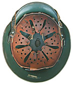 ドイツ国境警備隊で戦後も若干の改良部分はあるものの一貫して使用され続けた大戦型のスティールヘルメット。革製チンストラップ(WWII同型)付。