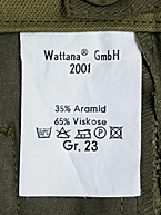 ドイツ連邦共和国の警察で2005年10月まで使用されたグリーンカラーベースの特務服のパンツ。前合わせがメンズと逆の婦人警官用 実物未使用放出品。