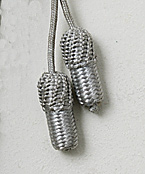 ■本体構成:シルバーカラーの組み紐(ループ状)、の最下部に2個のコーン状飾り付(右上画像参照)。