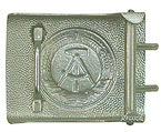 ■大戦中のドイツ軍と同仕様の人民軍用バックル。人民警察(VoPo)でも使用。バックル中央に東独国旗中央のデザインと同じ当時の体制のシンボル(パンマー、コンパス、麦)入り。