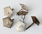 ■構成:五角形の真鍮製本体の表面をシルバーカラー仕上げにした物。裏側中央部に装着用ピンあり