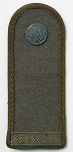 東ドイツ人民軍における兵用肩章に装着するメタル素材のストライプ(リッツェン)状ディヴァイス。一般兵(Soldat)より各上等兵へ昇進時に使用。野戦服肩章用ペイント仕様タイプ。