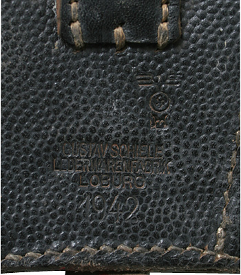 ●下段パウチ:背面Dリング取り付け基部直下に海軍検定マーク(アドラー & M)刻印、メーカー名、所在地と年号(1942年)の刻印あり/該当画像参照