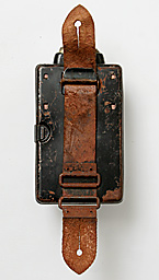 ●背面;ボタンホール部(上下)の付いた革製ストラップ付。