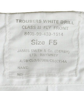 ■制式名称:Trousers, White Drill, CLASS II, Fly Front