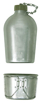 フランス軍及び外人部隊のキャンティーン水筒(水筒本体、カバー、カップ)とスプーン、フォークの5点セット。尚、カバーは50〜60年代初頭(アルジェ戦頃)のドットボタンがシングル(横一列)タイプ。実物未使用デッドストック品。コレクターズアイテム! !