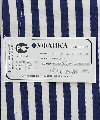 伝統的なダークブルーのストライプ(ボーダー柄)の、ソビエト連邦(現ロシア)海軍アンダーシャツ。通常薄手タイプ。実物・未使用品。