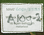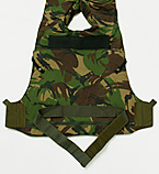 オランダ軍における90年代のDPMカモ柄ボディー・アーマーベスト。襟付きで、装備時に動作の制限を軽減させる意味と通気性の改善の為と考えられる、背面プレートが肩胛骨付近より下部が分割されたセパレート仕様品。