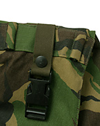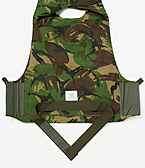 オランダ軍における90年代のDPMカモ柄ボディー・アーマーベスト。襟は廃され両肩部には付属プレート等の取り付け用と考えられるストラップ及びプラスティック・バックル(雄雌共に)付き仕様品