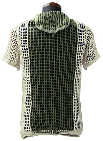 ノルウェー軍のメッシュ(格子状)織素材で半袖のアンダーシャツ。フード付ツートンカラー仕様。実物未使用放出品。