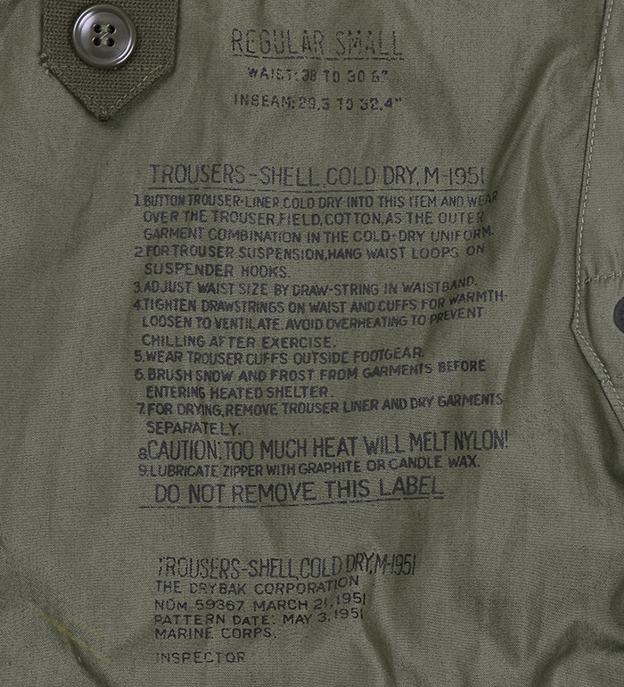 ■制式名称:TROUSERS-SHELL, COLD DRY, M-1951