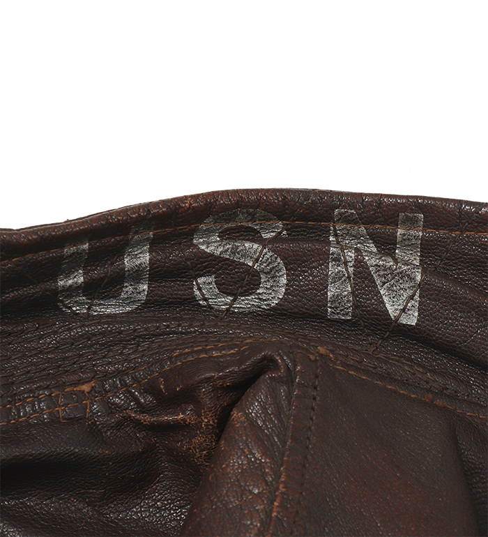 大戦初期(1941年)、米海軍において採用された『M-422A』。本来は襟表にムートンがつくが、A-2同様の革襟(ゴートスキン)にモディファイドされた珍品。大戦初期に製造された革ジャケットとしては稀有ともいえる良好なコンディション。コレクターズ・アイテム!!