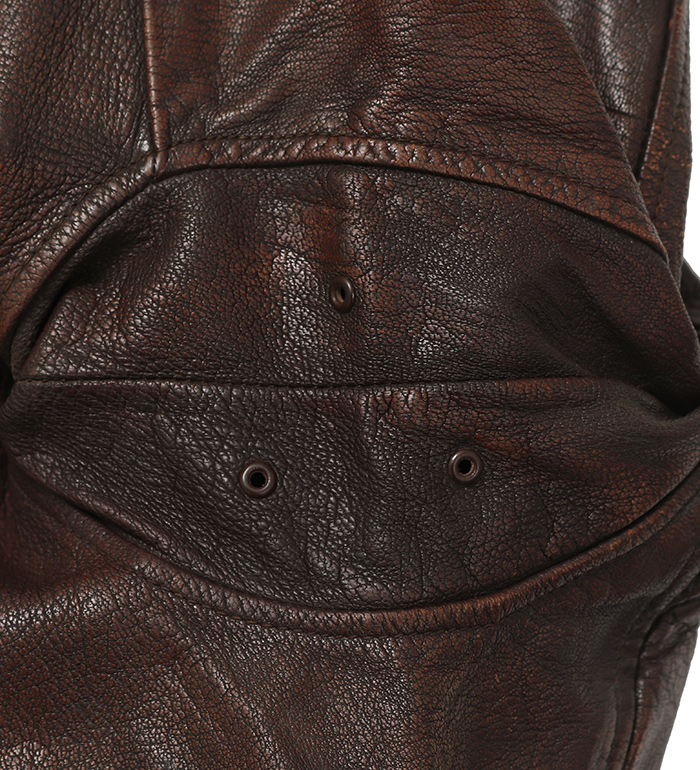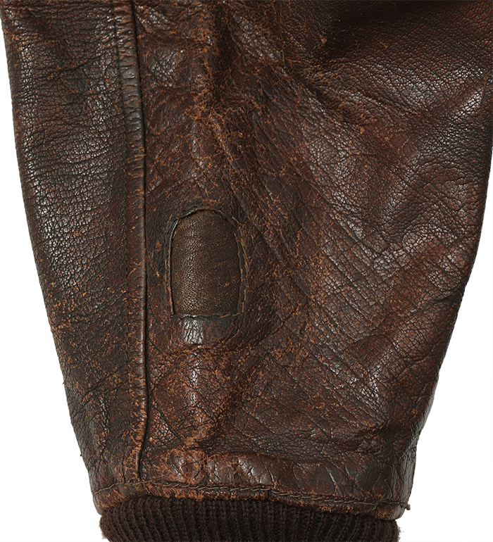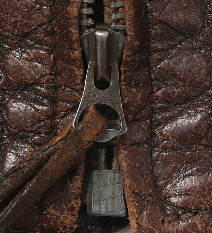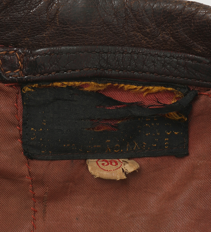 ご案内は大戦初期期に製造支給された革ジャケットとしては稀有ともいえる良好なコンディションですが、軍務で実際に使用されたレザーフライングジャケットです。使用又はコレクションに差し支えない退色、擦れ、小傷、小汚れ、小虫食い、小補修痕、及び縫い糸の経年劣化によるステッチ欠落や緩みの発生、金属部分に若干のサビ緑青の発生、等があること予めのご了承お願いいたします。