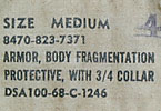 ARMOR, BODY FRAGMENTATION PROTECTIVE, WITH 3/4 COLLAR