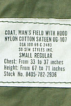胸にU.S.ARMYネーム(織りタイプ)の付いたアルミZIPのM-65フィールドジャケット。