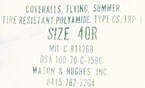 COVERALLS, FLYING, SUMMER, FIRE RESISTANT POLYAMIDE, TYPE CS/FRP-1