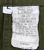 大戦米陸軍におけるWAC(陸軍婦人部隊)用HBT トラウザーズ。ウェスト部両内サイドにガスフラップ付の『SPECIAL』仕様モデル。実物極上品。