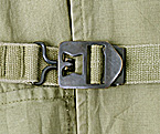 ■ウエスト部:内装式ウェストベルトあり/脱着用金具はM1ヘル用チンストラップの金具と同仕様(右上画像参照)