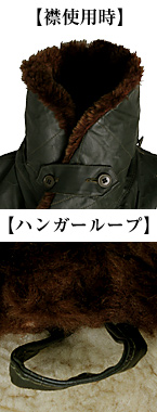 ■襟裏ストーム・フラップ:左側襟裏にあり/右上画像上段参照(使用例)