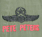 左胸:直接刺繍されたコマンドパイロット章&ネーム(PETE PETERS)(右上画像参照)